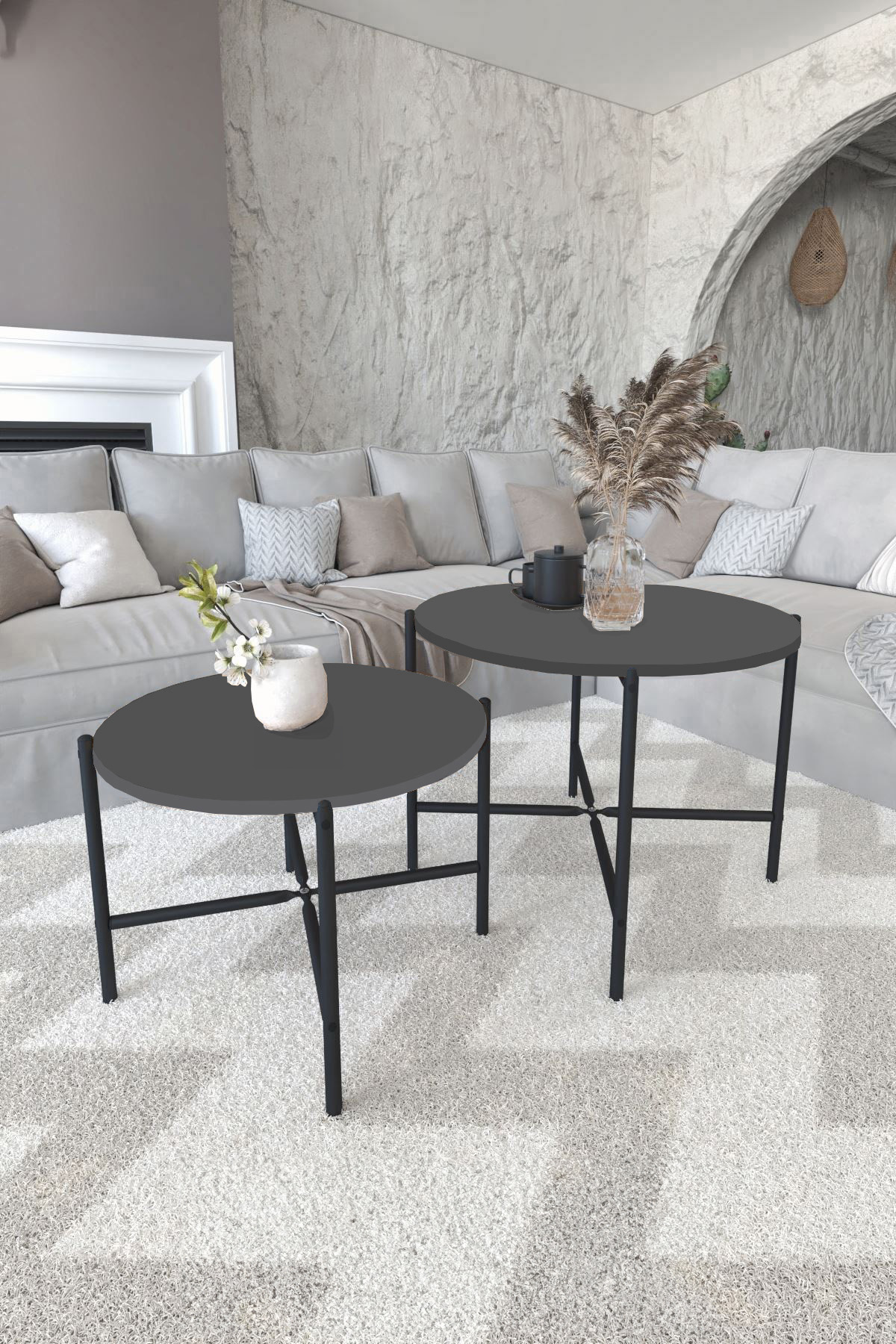 MOBILJE 2 SETS ROUND COFFEE TABLE - ANTHRACITE