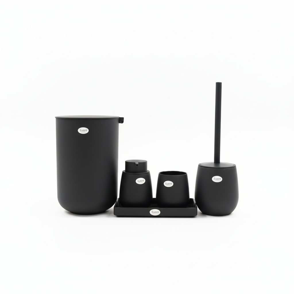 Koshi i vogël tualeti Lueré në ngjyrë të zezë është zgjidhja praktike dhe elegante për mbeturinat e përditshme në banjo. Dizajni modern i zi kombinohet lehtë me setin e tjera të aksesorëve të tualetit.