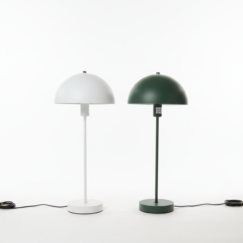 Ambazhuri i tavolinës në ngjyrë të bardhë ofron ndriçim funksional dhe pamje moderne për çdo ambient pune apo leximi. Dizajni me kupolë dhe bazë të rrumbullakët e bën të lehtë për t’u kombinuar me çdo stil mobilimi.
