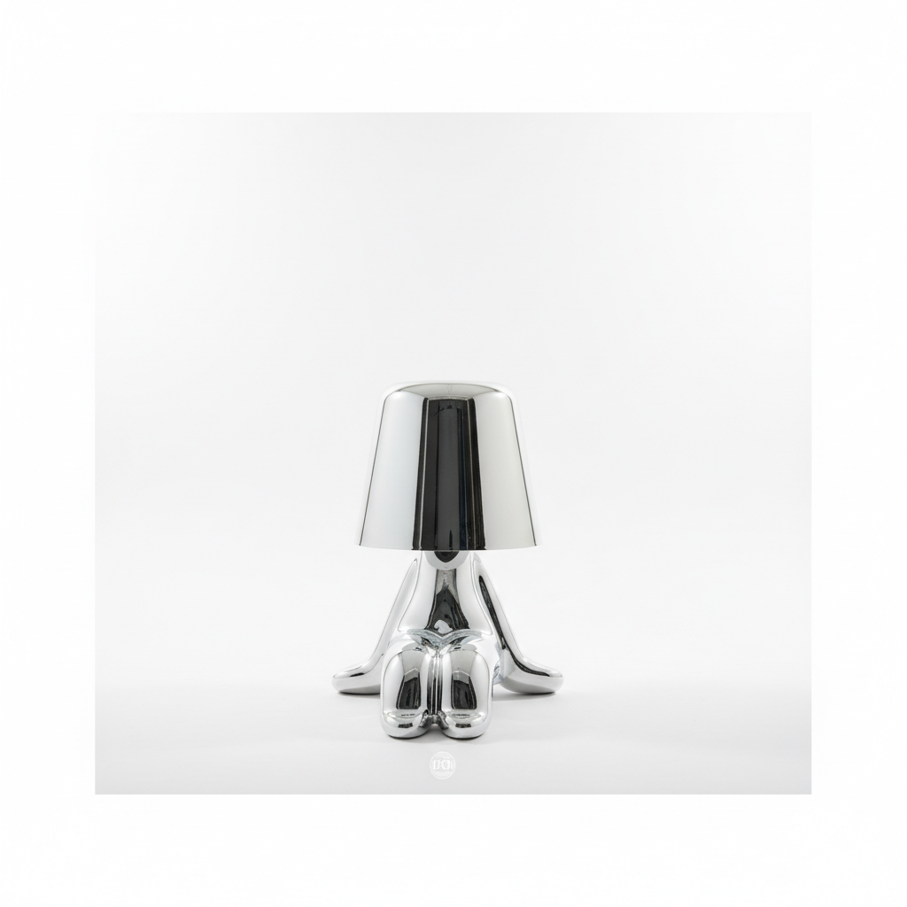 Ambazhuri i tavolinës me dritë LED sjell një prekje moderne dekorative falë përfundimit metalik dhe bazës unike në formë këmbësh, ideal për tavolina pune apo komoda.
