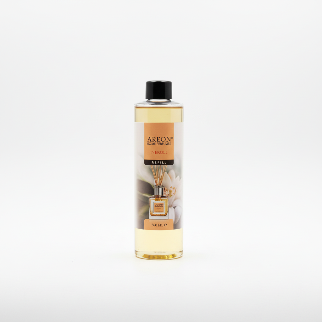 Rimbushës i lëngshëm AREON me aromë neroli për difuzorë shkopinjsh, ideal për të freskuar dhe aromatizuar ambientet tuaja të shtëpisë. Shishja praktike 260 ml ofron përdorim të zgjatur dhe të lehtë.