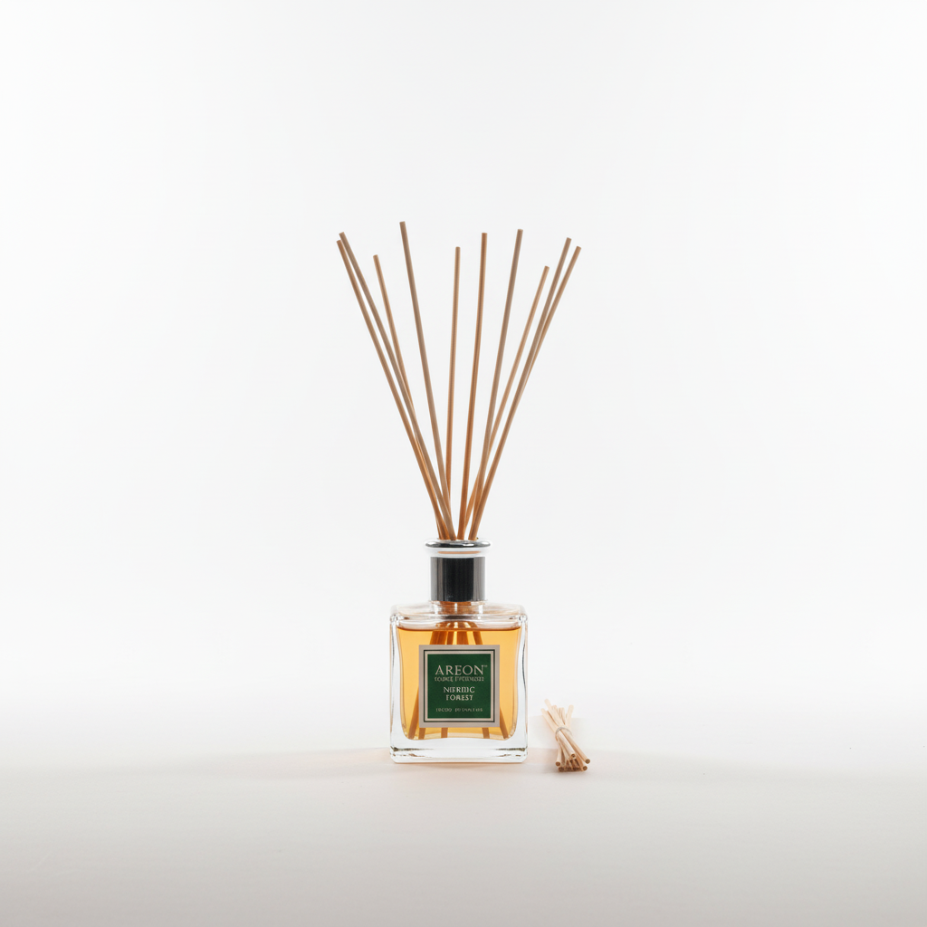 Aromatizues shtëpie me shkopinj i cili mbush ambientin me aromë të freskët Nordic Forest, i prezantuar në një shishe qelqi elegante 150 ml.