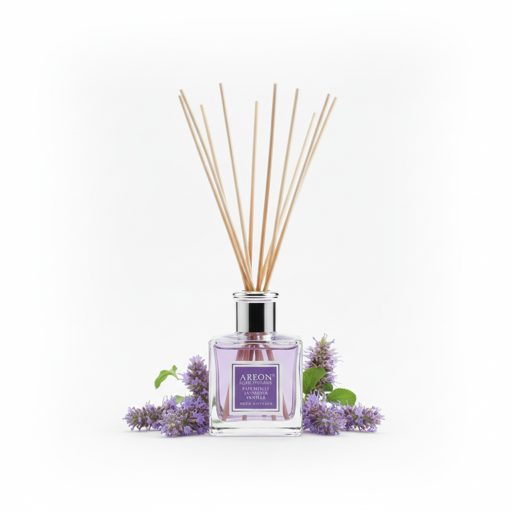 Aromatizues shtëpie me shkopinj që përhap aromën relaksuese të patchoulit, livandës dhe vaniljes në çdo ambient. Ideal për krijimin e një atmosfere të këndshme dhe mikpritëse në shtëpi.