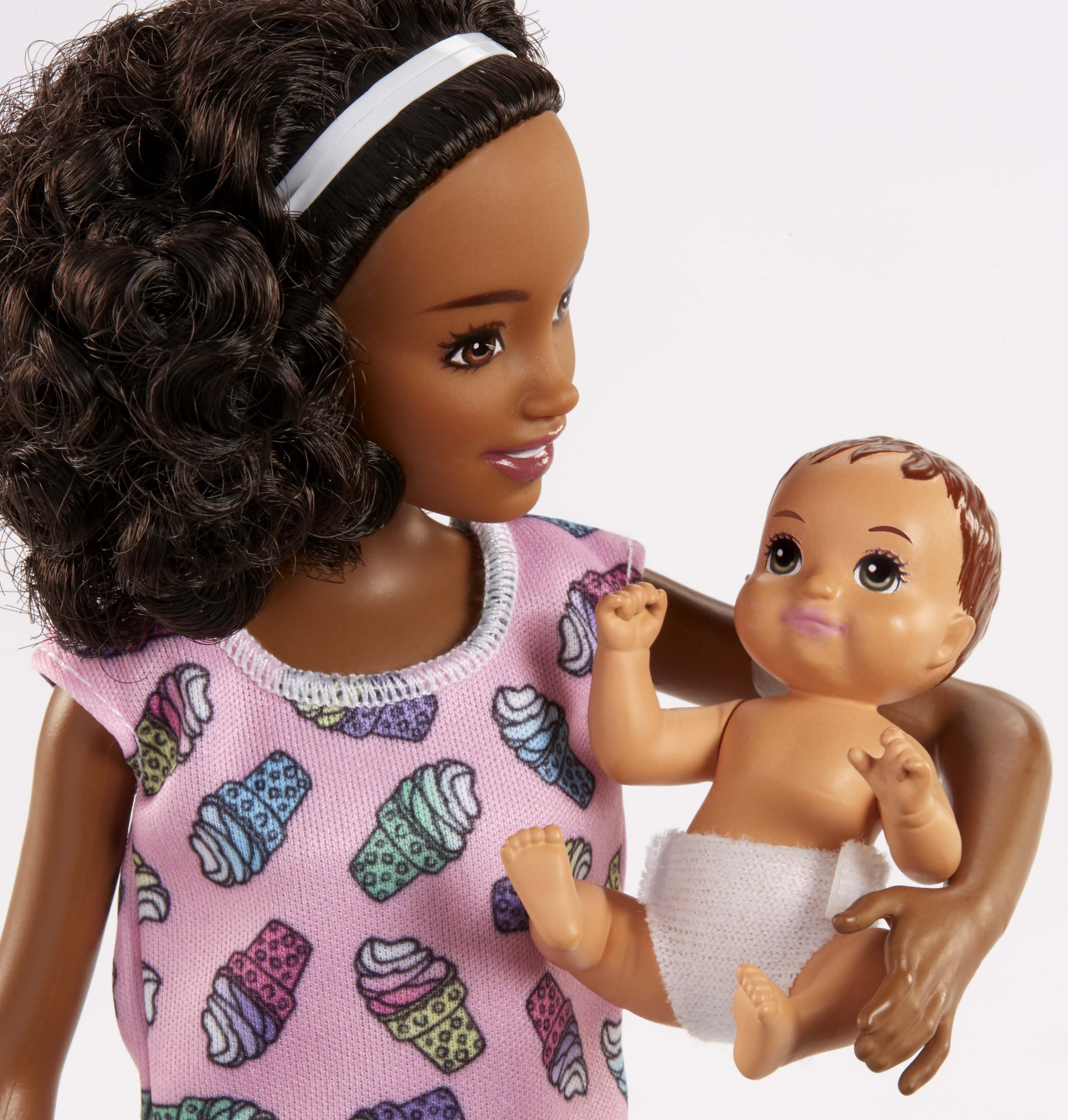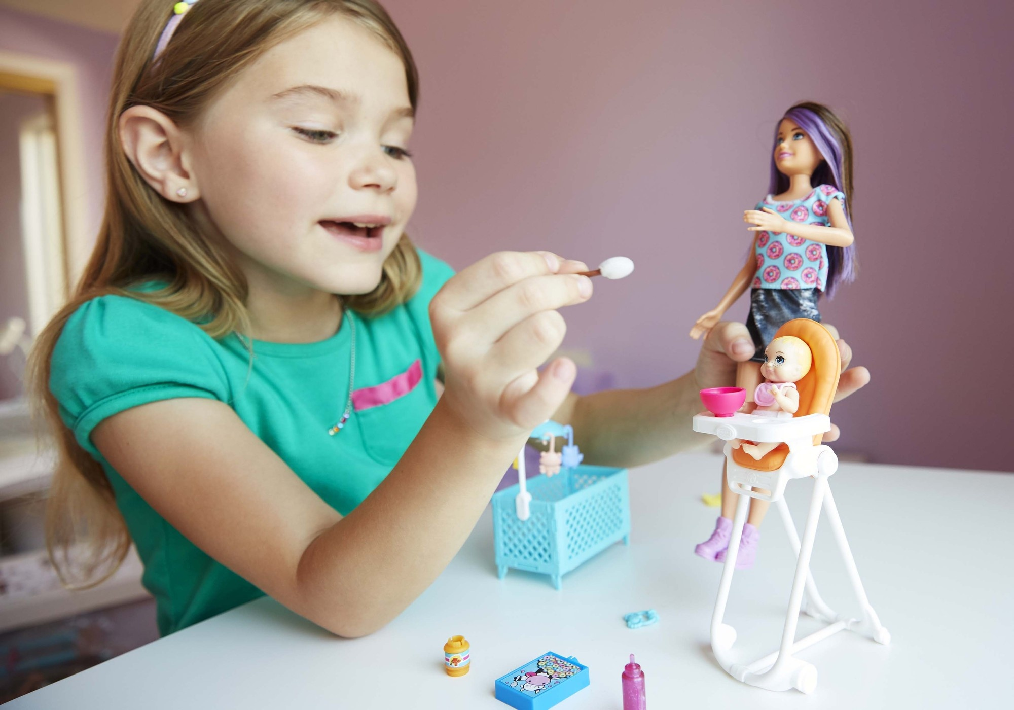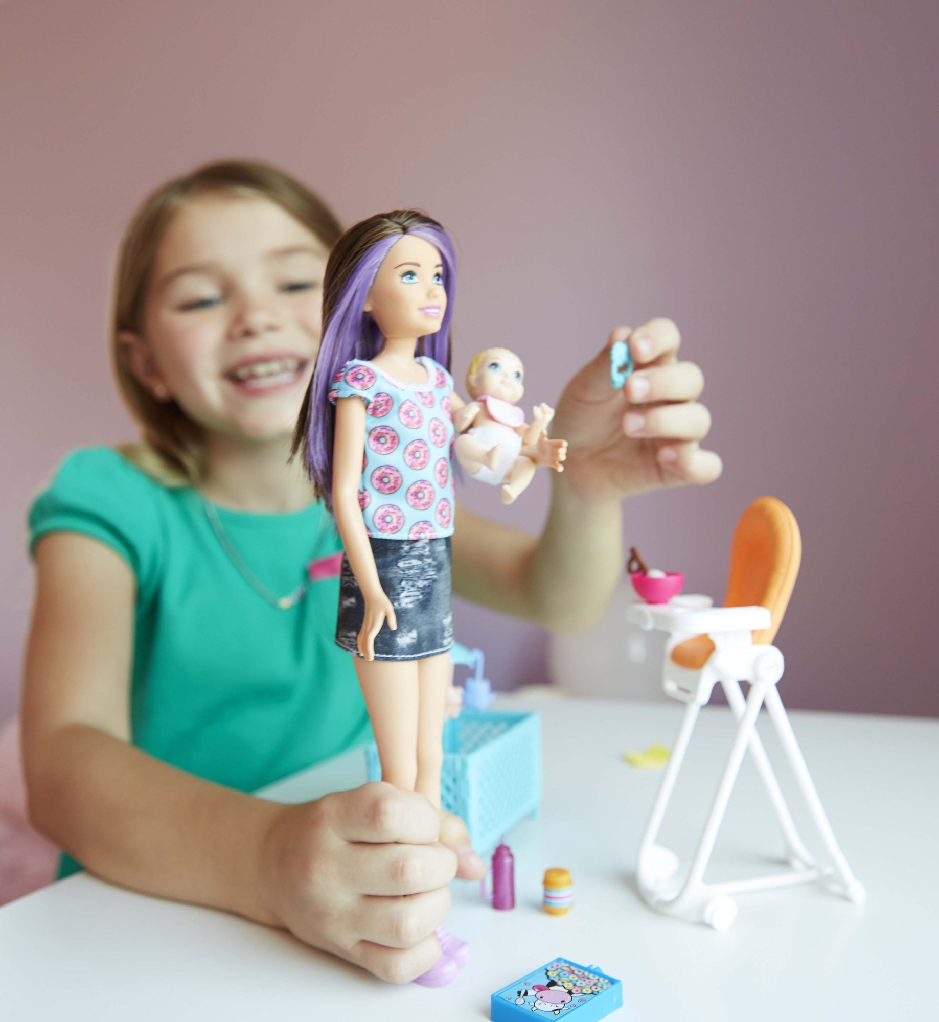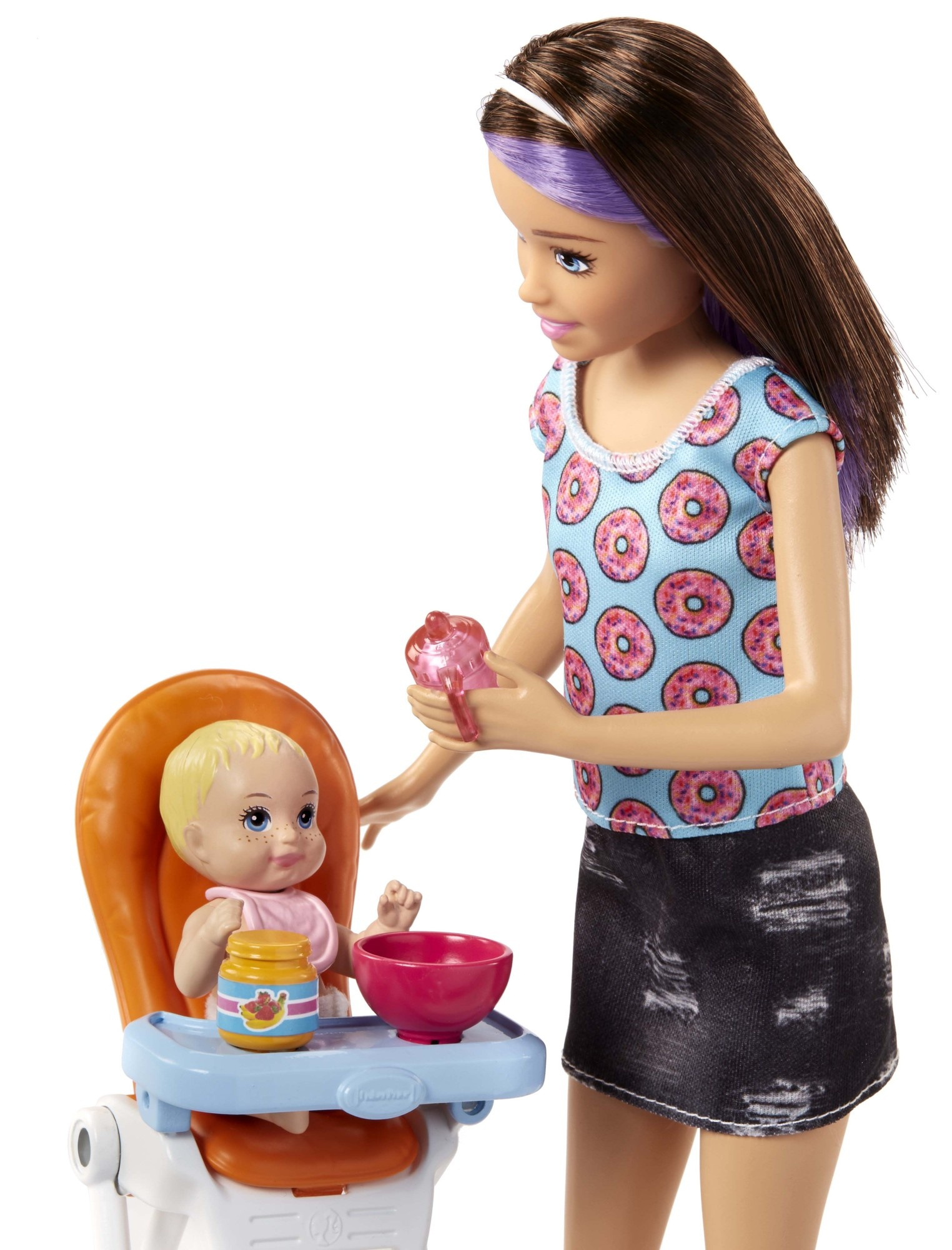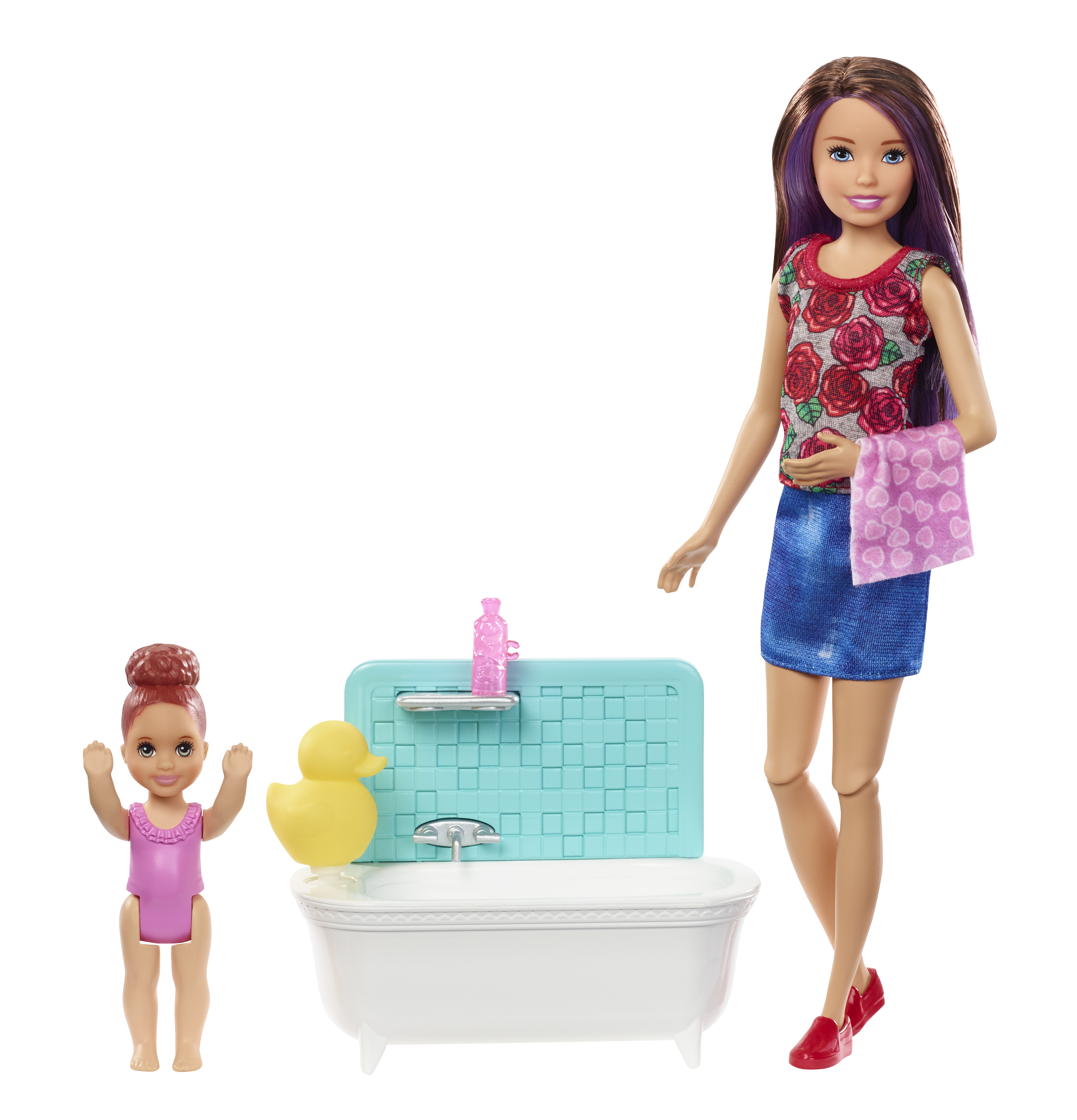 Barbie® Skipper™ Babysitters Inc.™ dolls and playsets let kids explore their nurturing side as the babysitter with a Skipper™ or friend doll, a baby or toddler doll and furniture and accessories matched to classic childhood moments. Choose from babysitting sets themed to feeding, bedtime and bath time. Each has a fun feature to add inspiration to storytelling: the hungry toddler doll can feed herself with a little help from kids, the sleepy toddler doll has glow-in-the-dark pajamas and the bathing toddler doll makes a splash with moving arms that can be activated when kids want to see her make waves in the tub. With so many pieces to inspire storytelling, there are endless babysitting adventures to imagine and reimagine. Kids will love being the babysitter and caring for others with this playset that inspires nurturing play! Collect the Babysitters Inc.™ dolls and accessories to fill a babysitting schedule full of fun. Barbie® Skipper™ Babysitters Inc.™ playsets include babysitter doll wearing fashion and accessories, small toddler doll and themed accessories. Each sold separately, subject to availability. Larger dolls cannot stand alone. Colors and decorations may vary.