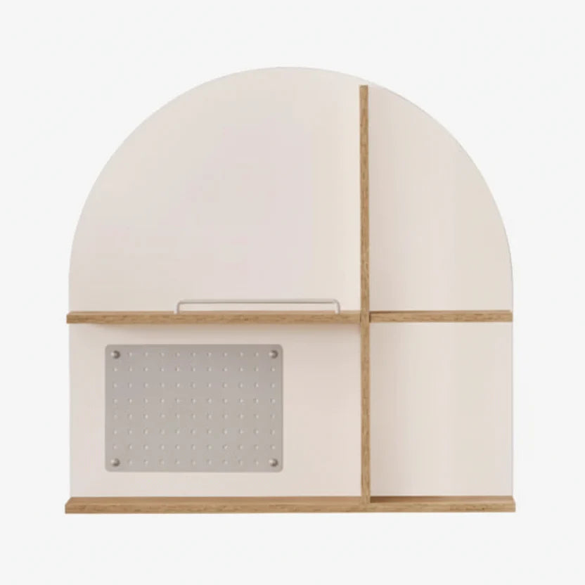 Kjo mbajtëse librash me dizajn modern është një zgjidhje praktike dhe dekorative për organizimin e librave dhe aksesorëve në çdo ambient. Forma e rrumbullakosur në pjesën e sipërme dhe ndarjet funksionale krijojnë një pamje të veçantë dhe bashkëkohore, e cila përshtatet lehtësisht me stile të ndryshme interieri.