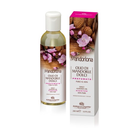 Vaji ultra i pastër i bajames, i marrë me presim të ftohtë, është i disponueshëm ose 100% natyral ose me aromë: një aromë delikate fryn trupin tuaj duke krijuar një buqetë me lule që përzien orkide, trëndafil të bardhë dhe frangipani së bashku me notat e ëmbla dhe chiprè të benzoinës, bajameve dhe vaniljes. .