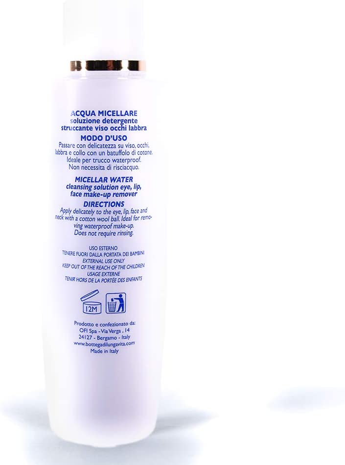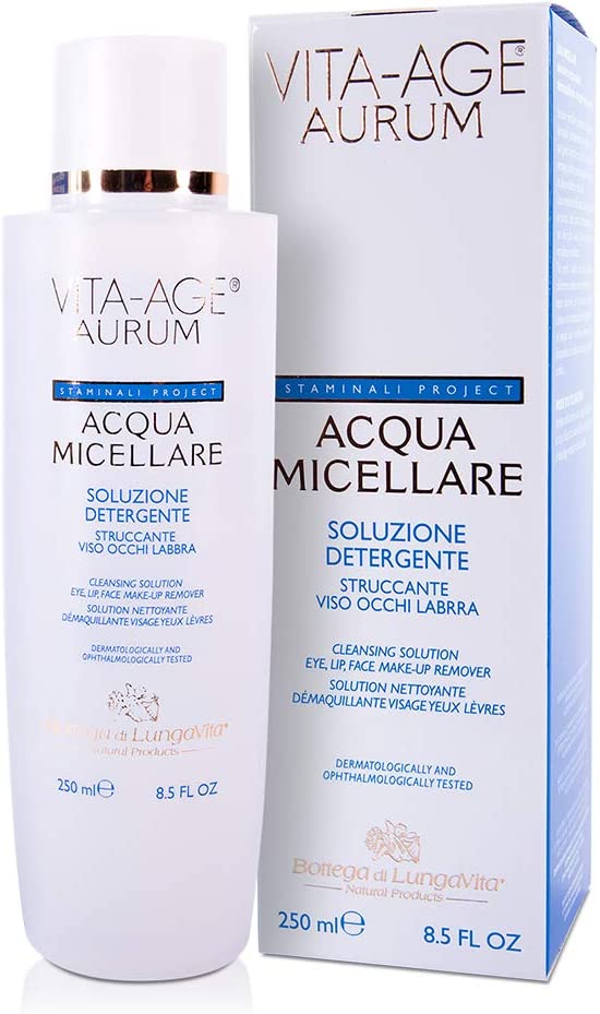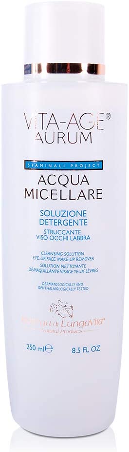 I përshtatshëm për të gjitha llojet e lëkurës, duke përfshirë ato më të ndjeshmet dhe reaktive, kjo solucion micellar inovativ pastron dhe largon tërësisht make-up-in nga fytyra, sytë dhe buzët. Siguron lëkurë të hidratuar dhe të qetësuar menjëherë dhe një veprim ultra të butë detoksifikues dhe pastrues. Për më tepër, garanton tolerancë të shkëlqyer të lëkurës dhe syrit në heqjen e grimit rezistent ndaj ujit, pluhurit dhe ndotjes së ajrit. UJI MICELARI Lungavita është zgjidhja ideale për heqjen e make-up-it në fund të ditës dhe për pastrimin e fytyrës në mëngjes. Lehtësia e përdorimit e bën atë një domosdoshmëri për gratë sportive që nuk e pëlqejnë efektin kremoz të qumështit pastrues dhe preferojnë një rutinë praktike pastrimi. Ky specialitet është një artikull thelbësor gjatë udhëtimit dhe mund të përdoret në vend të qumështit pastrues, pastruesit të make-up-it dhe tonerit.