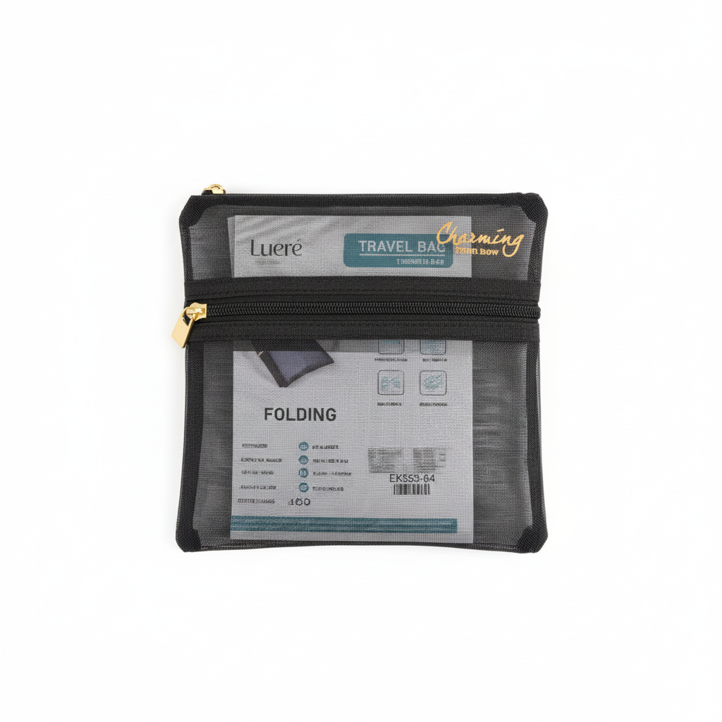 Çanta kozmetike prej rrjete me përmasat afërsisht 18×19 cm është ideale për organizimin e produkteve tuaja gjatë udhëtimeve. Dizajni i palosshëm dhe mbyllja me zinxhir e bëjnë praktike dhe të lehtë për t’u mbajtur kudo.