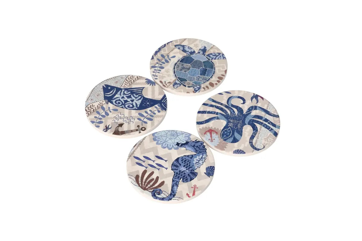Coaster set / 10 cm / Rreth / Porcelan / Ilustrime peshq blu