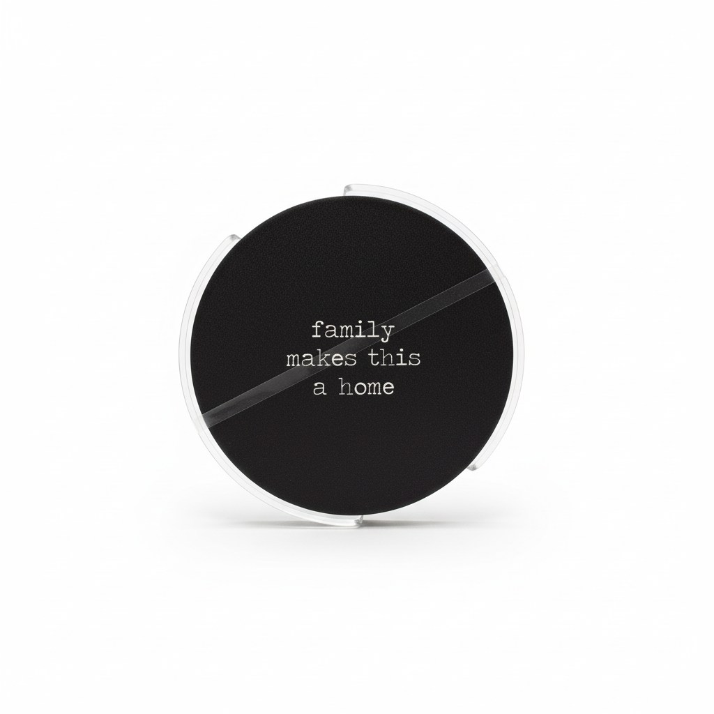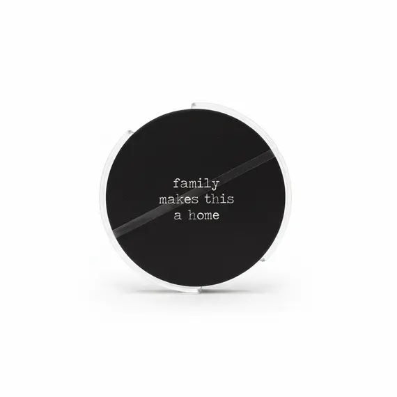 Set elegant nënstakësh cementi me mbishkrimin "family makes this a home", ideal për të mbrojtur tavolinat nga lagështia e gotave dhe për t’i dhënë ngrohtësi shtëpisë tuaj. Dizajni i rrumbullakët me pamje guri kombinohet lehtësisht me çdo stil arredimi.