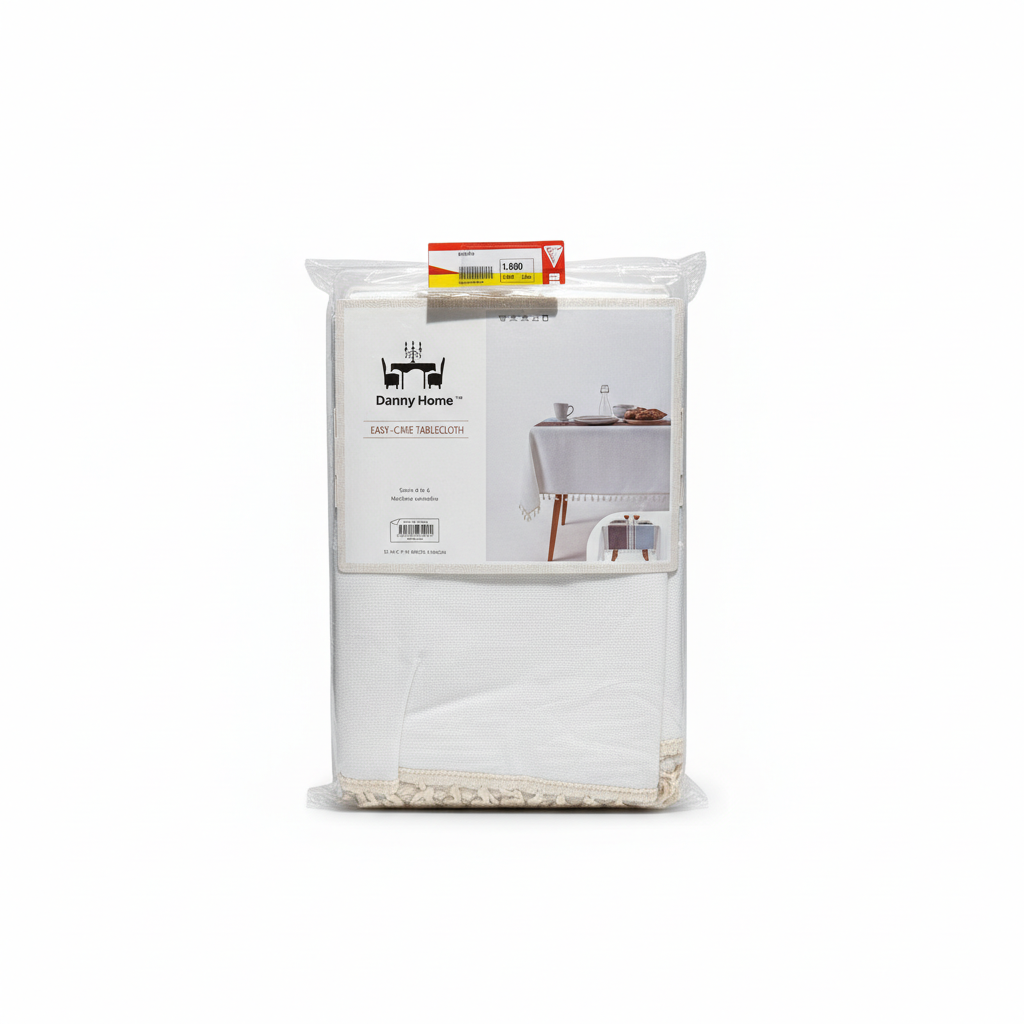 Danny Home Mbulesë Tavoline Easy-Care, 140 x 180 cm, Dikëndëshe, E Bardhë me Pendesë Dekorative