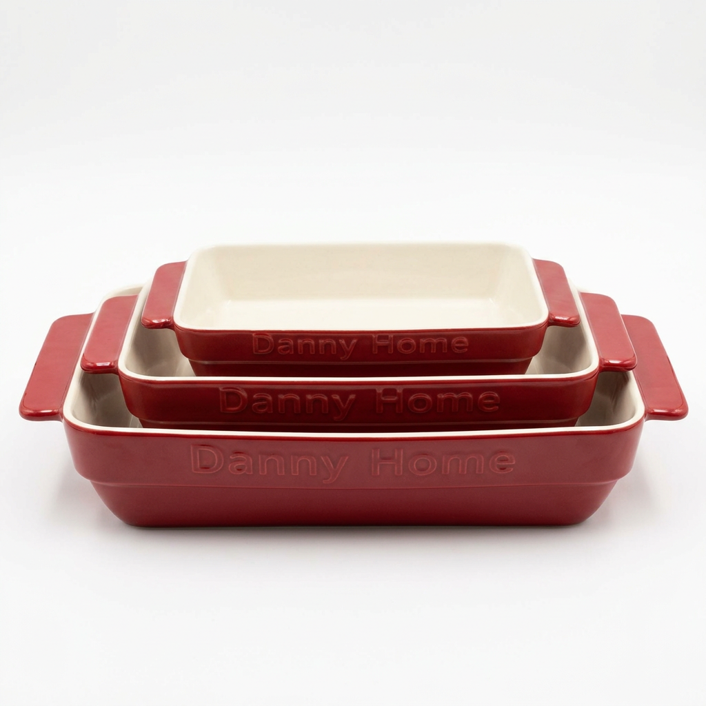 Danny Home Set Tavash Pjekjeje Porcelani, 3 Copë, Drejtkëndëshe, Ngjyrë e Kuqe