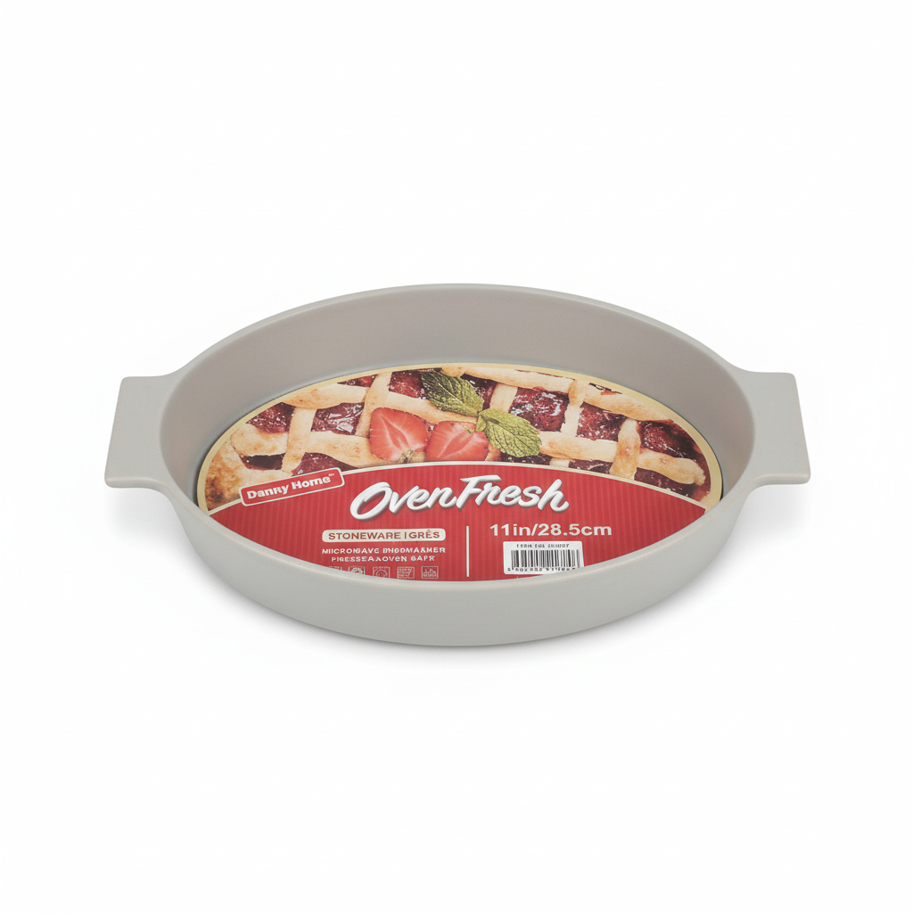 Kjo tavë pjekjeje prej stoneware ofron shpërndarje të qëndrueshme të nxehtësisë, ideale për ëmbëlsira, lazanja dhe pjata të përditshme. Forma ovale me doreza praktike e bën të lehtë futjen dhe nxjerrjen nga furra, si edhe shërbimin direkt në tryezë. Madhësia prej 11 in / 28.5 cm është perfekte për familje dhe darka me miq. E prodhuar në P.R.C., kjo tavë kombinon funksionalitetin me një dizajn të pastër e modern.