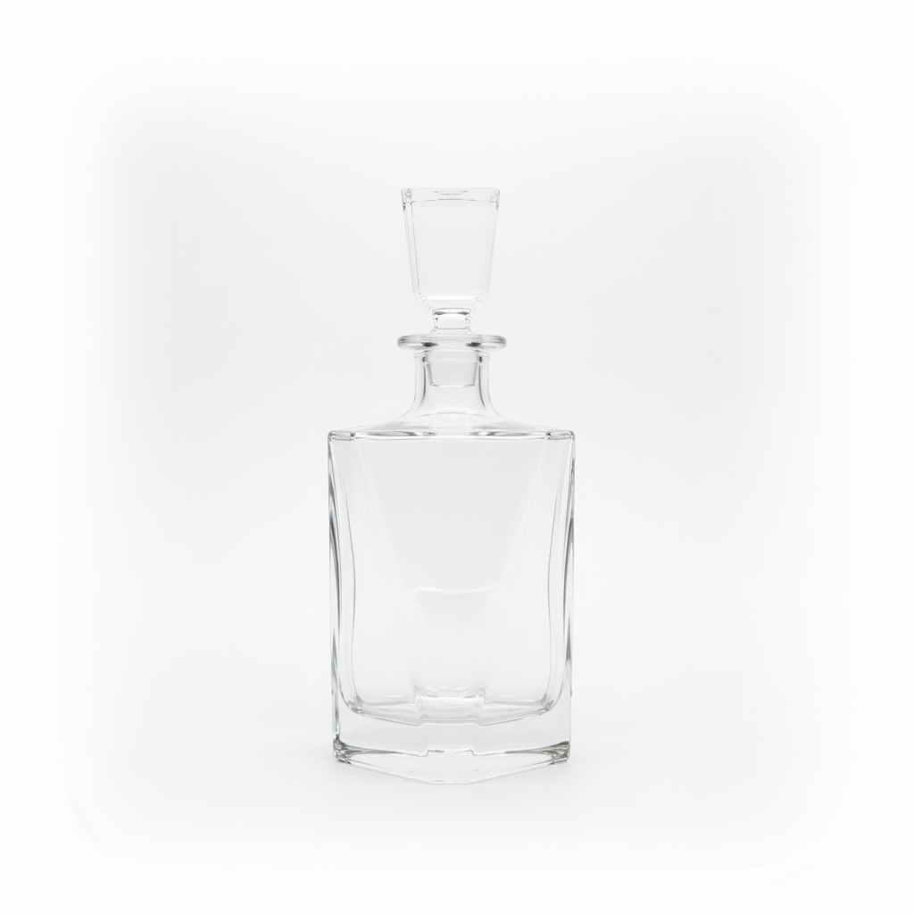 Dekantues kristali pa plumb me dizajn luksoz, i punuar me dorë për një paraqitje elegante në këndin tuaj të barit. Përfshin tapën e përshtatshme për ruajtje të sigurt të pijeve.