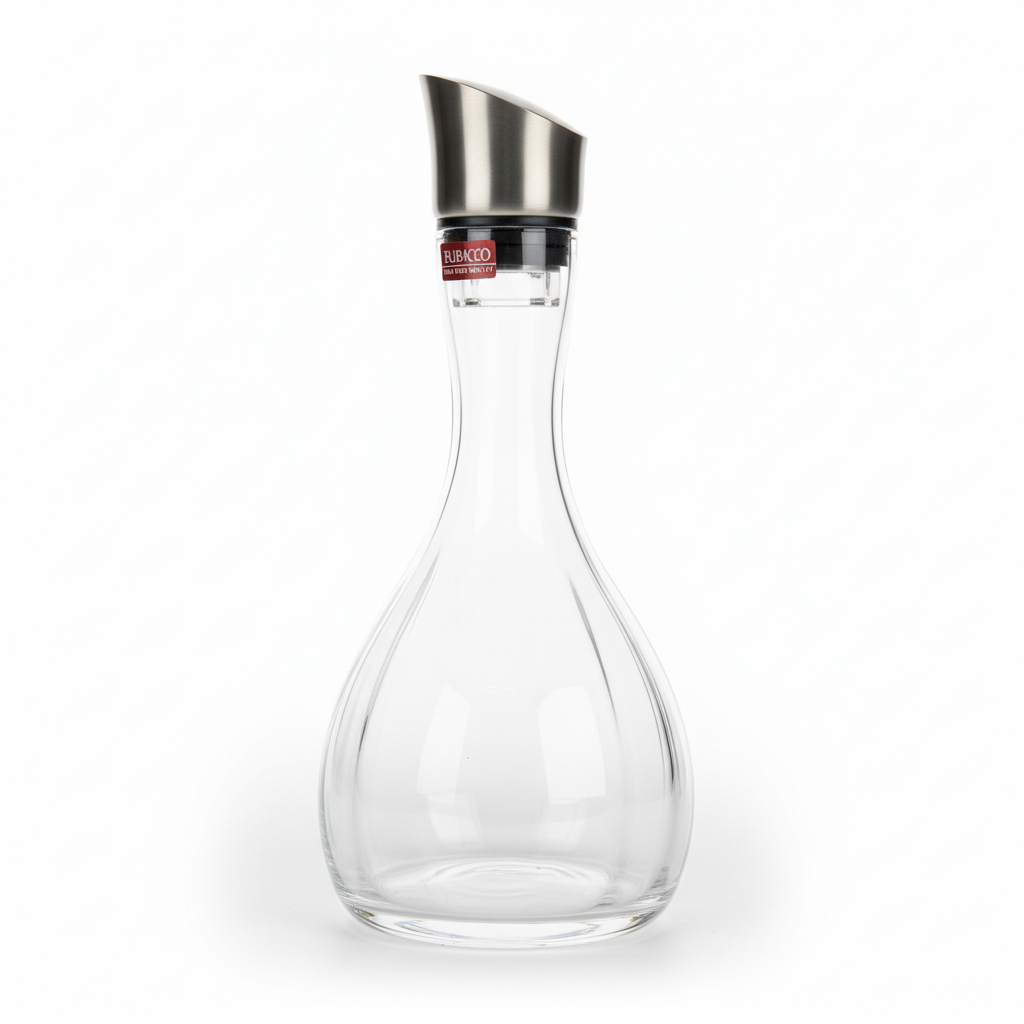 Kjo enë e punuar me dorë nga qelqi kristal i pastër sjell një pamje moderne në çdo tavolinë, duke theksuar ngjyrën dhe shkëlqimin e verës suaj të preferuar. Dizajni i saj i harkuar me baze të gjerë maksimizon ajrosjen, duke ndihmuar verën të hapet dhe të shpalosë aromat e plota. Kapaku praktik prej çeliku inoks ruan shijen dhe mbron përmbajtjen gjatë dekantimit dhe servirjes.