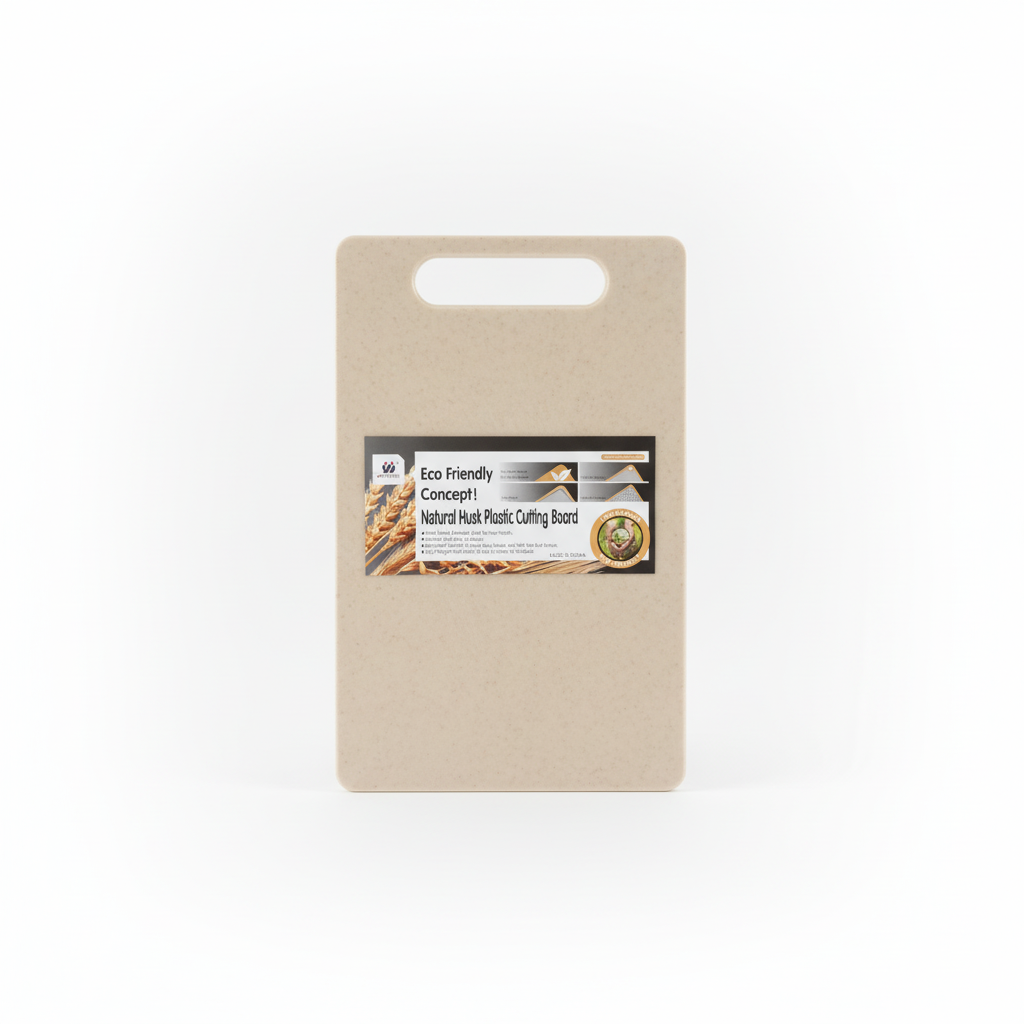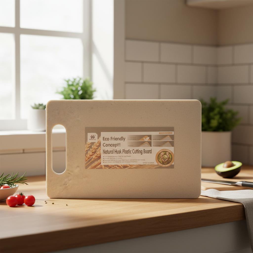 Dërrasa prerëse ekologjike nga husk natyral dhe plastik ushqimor ofron sipërfaqe të sigurt, të qëndrueshme dhe të lehtë për pastrim për përgatitjen e përditshme të ushqimit në shtëpi ose në natyrë.