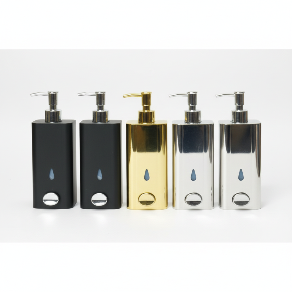 Dozuesi i lëngshëm mural 400 ml kombinon dizajn modern me përdorim praktik për sapun, dezinfektues ose locion. Trupi metalik me dritare frontale e bën të lehtë kontrollin e nivelit të lëngut dhe përshtatet me çdo banjo.