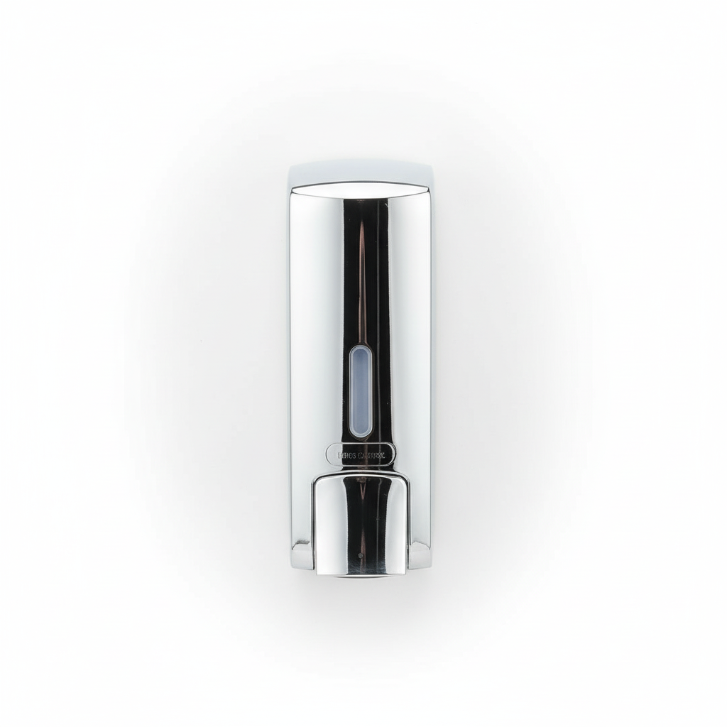 Dozues muror elegant për sapun apo shampo, me përfundim kromi dhe depozitë të rimbushshme për përdorim të përditshëm në banjo. Ideale për të mbajtur lavamanin dhe dushet të organizuara dhe higjienike.