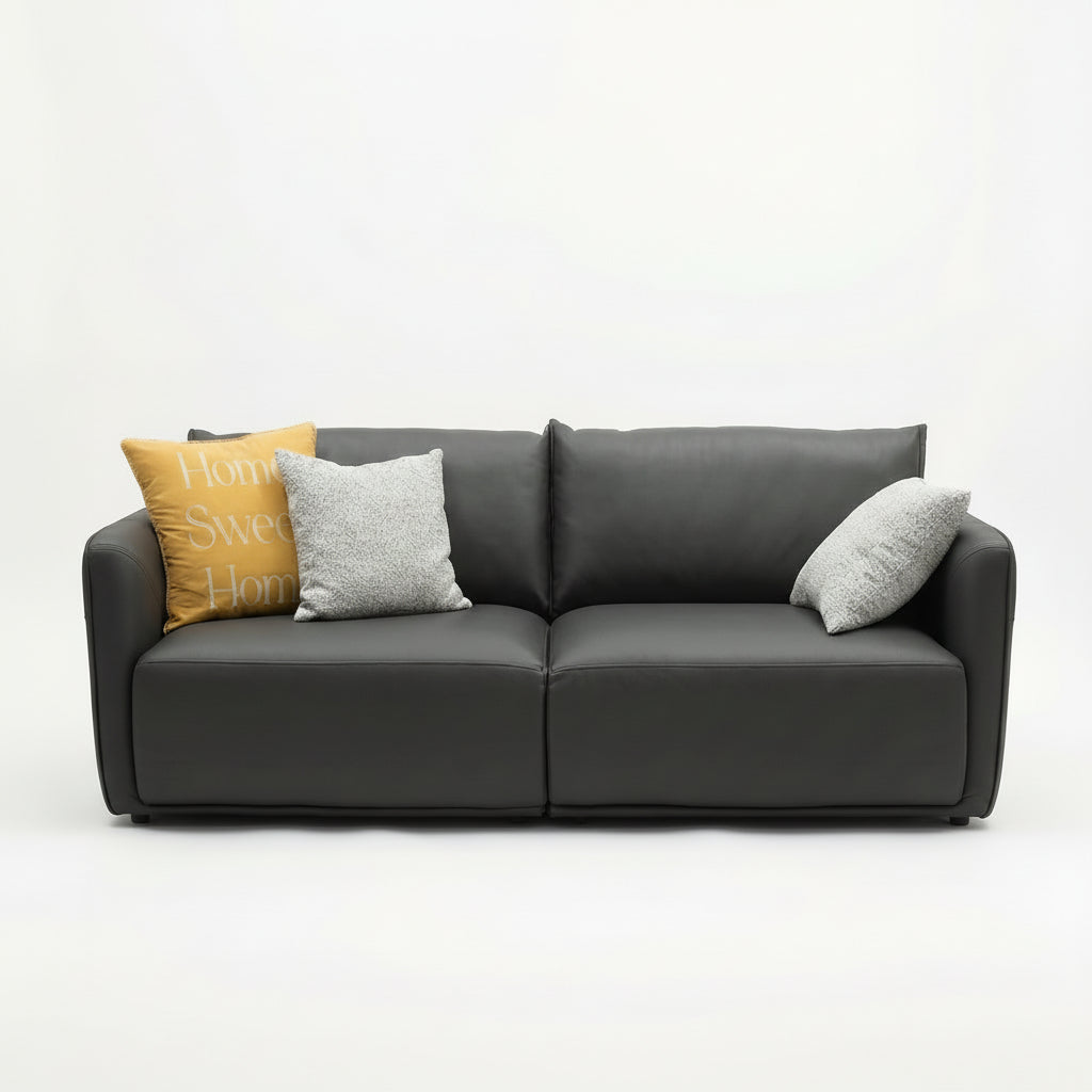 Materiali Inovativ: Pëlhura "Leather-Look" është sekreti i këtij divani. Ajo nuk është e ftohtë në dimër apo ngjitëse në verë si lëkura natyrale, por ruan atë pamjen e lëmuar dhe mat që i jep klas ambientit.