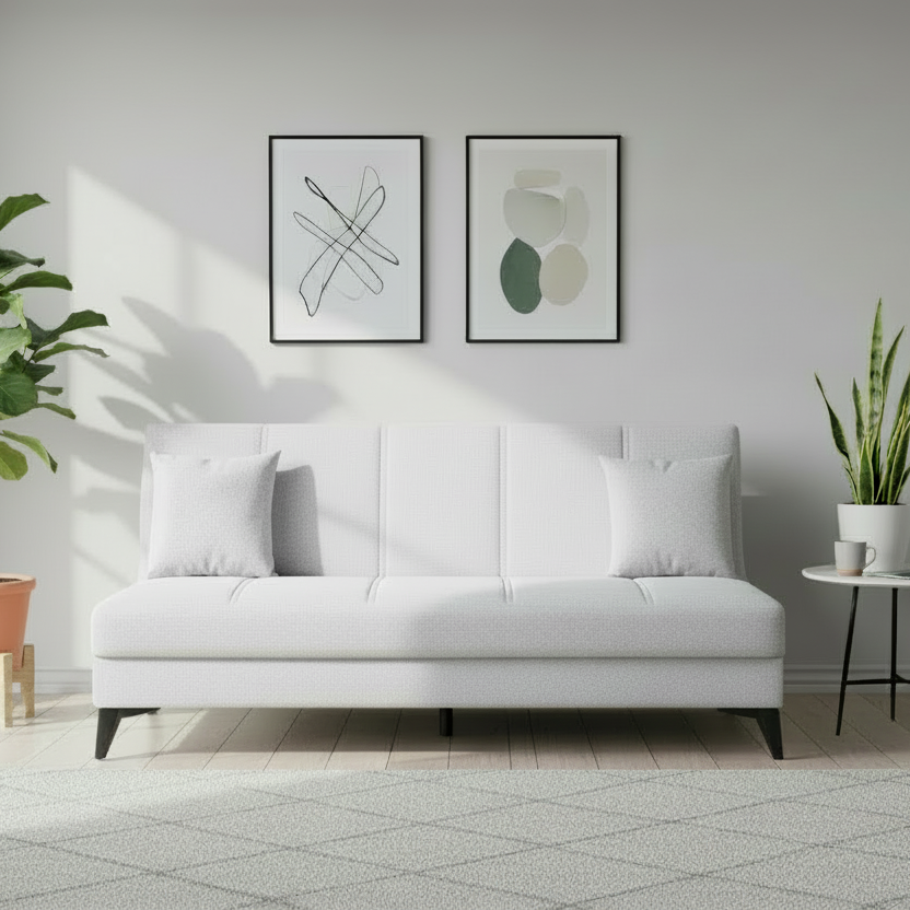 Zgjidhja inteligjente për çdo hapësirë moderne: Divani Aldo. I dizajnuar me një filozofi minimaliste "pa krahë", ky divan ofron sipërfaqe maksimale uljeje pa zënë vend të panevojshëm në dhomë, duke e bërë ideal për apartamente të vogla, dhoma studentësh apo zyra.