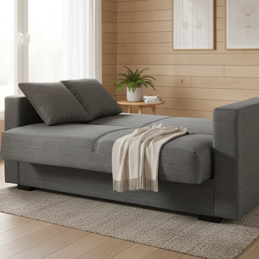 Funksioni i tij kryesor është transformimi: ky divan hapet lehtësisht për t'u kthyer në krevat, duke e bërë zgjidhjen ideale për të pritur miq që qëndrojnë gjatë natës.