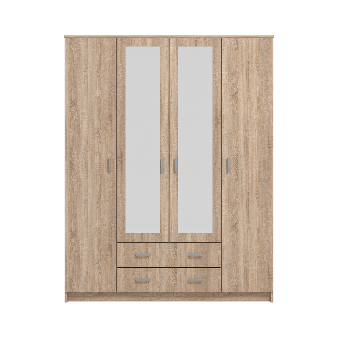 Ky dollap 5-derësh me dy pasqyra qendrore dhe sirtarë të integruar ofron organizim maksimal dhe stil modern në dhomën e gjumit. Struktura e gjerë siguron hapësirë të bollshme për rroba të varura, rafte për veshje të palosura dhe sirtarë praktikë për aksesorë apo sende personale.