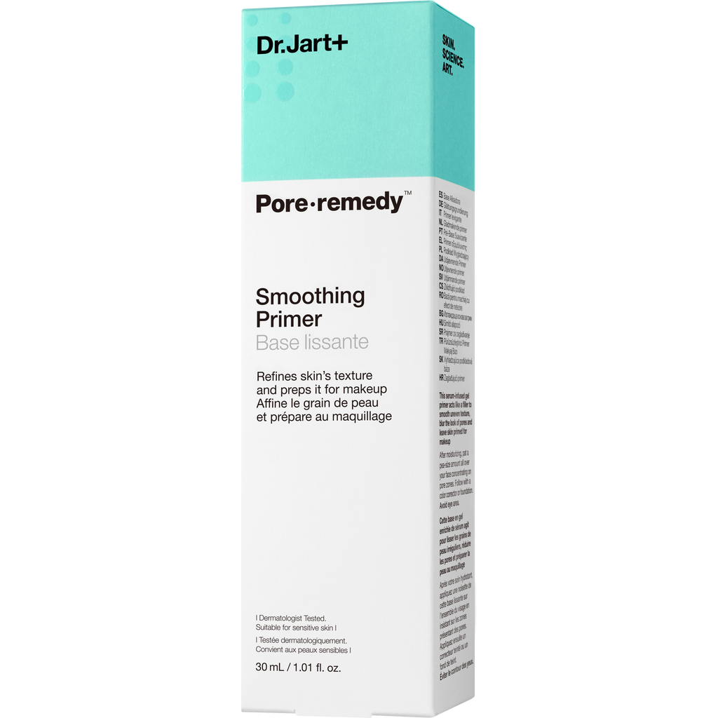 Pore.Remedy™ Smoothing Primer i Dr Jart+ ka një formulë të lehtë, të ngjashme me serumin, që vepron si një filtër për të zbehur pamjen e poreve. Në të njëjtën kohë, astari zbut dhe hidraton lëkurën dhe e përgatit atë për grim. Formula me pantenol është veçanërisht e veçantë, pasi xheli i lëngshëm përmirëson dhe forcon funksionin barrierë. Pigmentet e imëta veprojnë si një mbushës, duke zhdukur të gjitha papërsosmëritë. Do të shpërbleheni me një përfundim të butë dhe të butë.