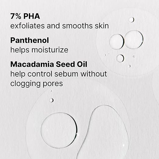Një serum i butë, si uji, me 7% PHA, i provuar klinikisht se ndihmon në rigjenerimin dhe zbutjen e lëkurës, dekongjestionin dhe tkurrjen e dukshme të poreve pa irritim.