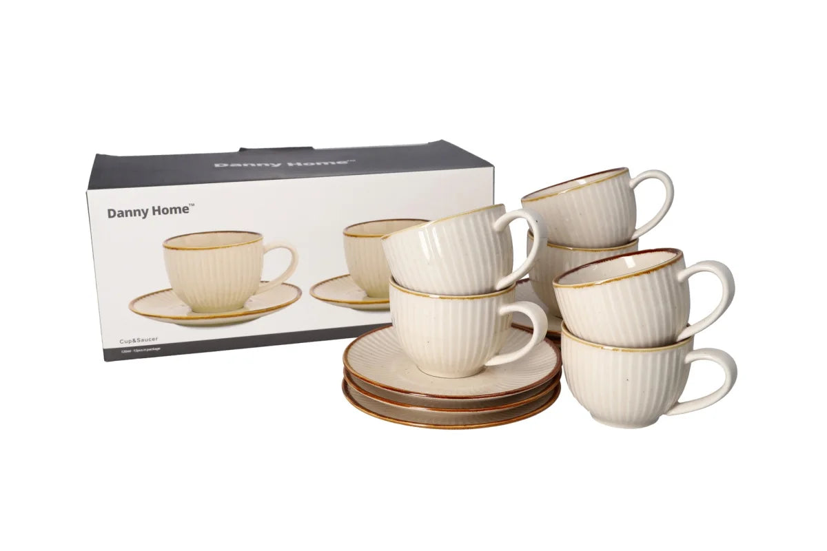 Set elegant prej 12 copësh filxhanë dhe pjatanca qeramike, që sjell një ndjesi klasike dhe vintage në ambientin e shtëpisë tuaj.