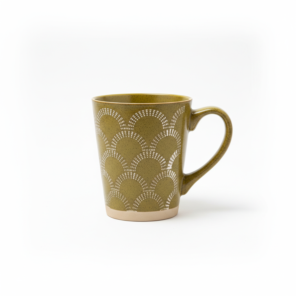 Filxhani prej porcelani 400 ml sjell kombinimin ideal të funksionalitetit dhe stilit për çdo kohë çaji apo kafeje. Dizajni dyngjyrësh me pjesën e jashtme jeshil-verdhe dhe pjesën e brendshme të çelur i jep një pamje moderne dhe të ngrohtë tryezës suaj. Doreza e rehatshme siguron kapje të sigurt, ndërsa modeli dekorativ me harqe me pika e bën atë një aksesor të veçantë në përditshmëri.