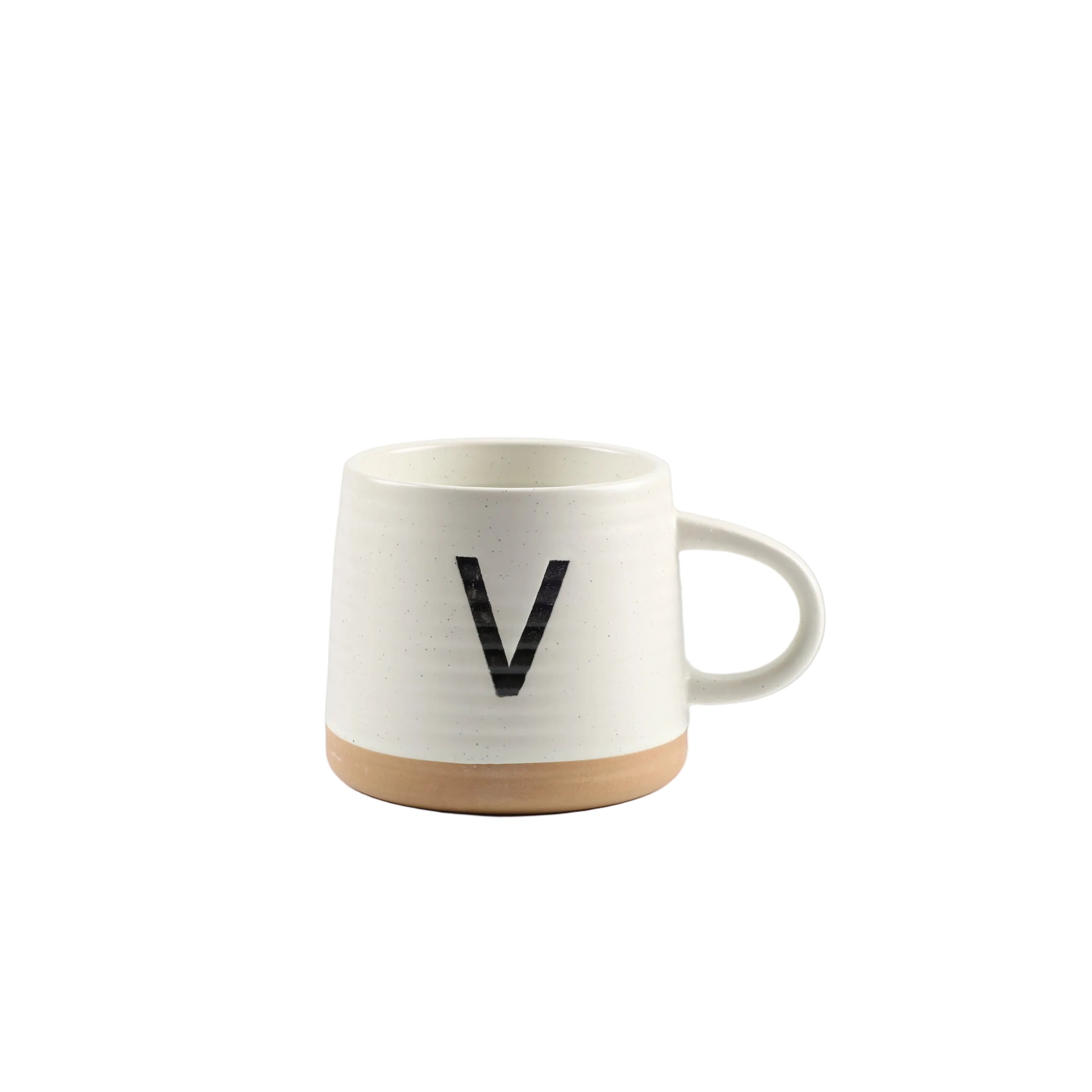 Dizajni minimalist me germën dekorative “V” i jep filxhanit një pamje moderne dhe personale, perfekt si dhuratë ose për përdorim individual.