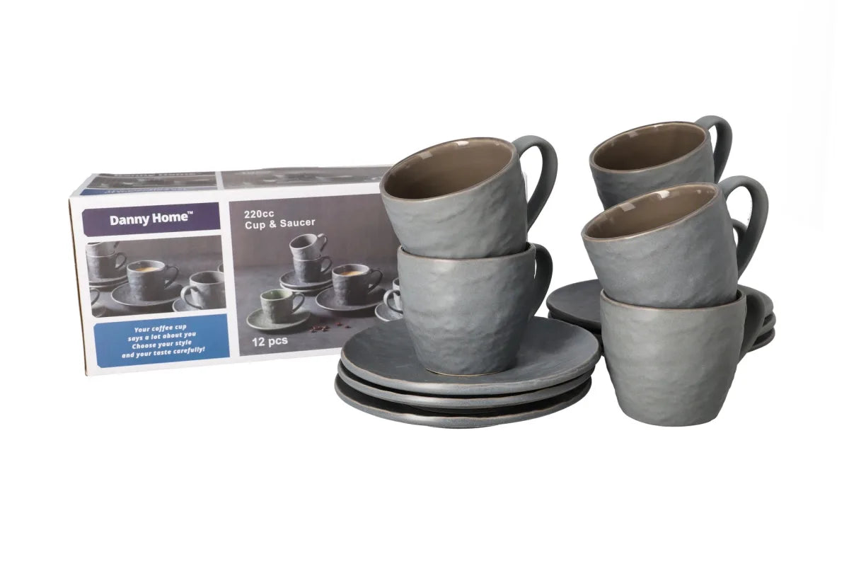 Filxhan Caji me Pjate / Set 6 cope / 220ml / Gri / Qeramike