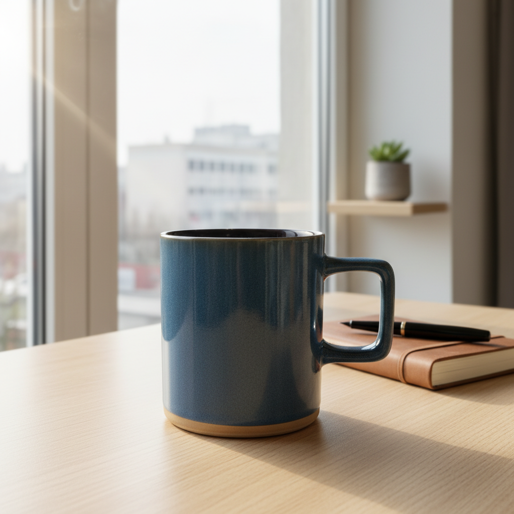 Filxhani i kafesë prej porcelani 380 ml me ngjyrë blu sjell stil modern dhe rehati në çdo mëngjes. Forma cilindrike dhe doreza e madhe e bëjnë të përsosur për kafe, çaj apo pije të tjera të ngrohta.