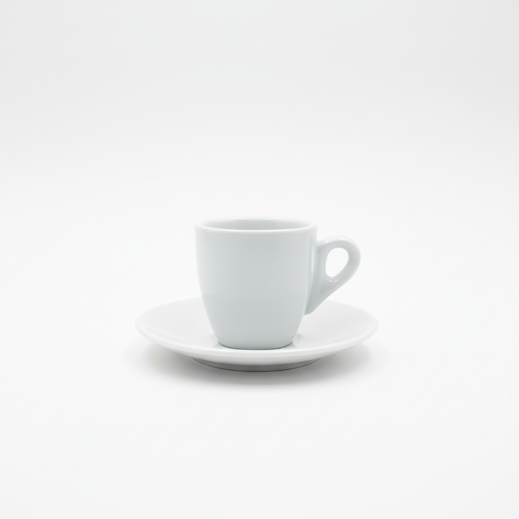 Filxhan klasik i bardhë për espresso me pjatë shoqëruese, i përshtatshëm për shërbim elegant kafeje në shtëpi apo biznes. Materiali qeramik/porcelan siguron pamje të pastër dhe përdorim të përditshëm.