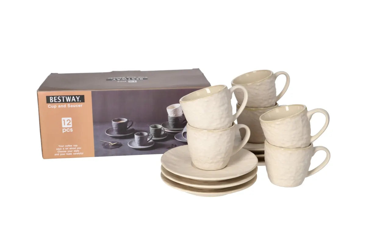 Filxhan Kafeje me Pjatë / Set 6 cope / 100 ml / Gri / Qeramike