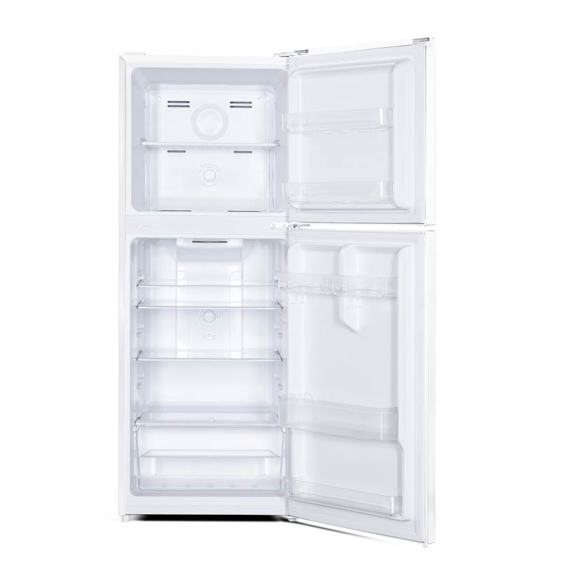 Mbarimi elegant i bardhë: Plotësoni estetikën e kuzhinës tuaj me dekorimin elegant të bardhë të frigoriferit. Dizajni i tij minimalist shton një prekje të sofistikimit në hapësirën tuaj, ndërsa dorezat ergonomike e bëjnë aksesin e ushqimit tuaj të lehtë.