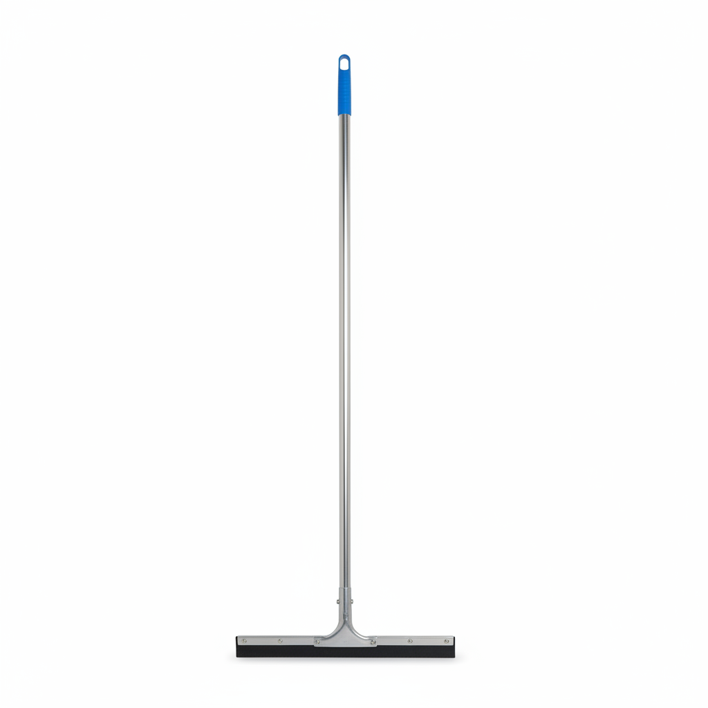 Kjo fshesë pastrimi me gome të gjerë dhe dizajn në formë T është ideale për të shtyrë ujin dhe lëngjet nga dyshemetë e brendshme, duke lënë sipërfaqen të pastër dhe të thatë. Shtylla e gjatë metalike siguron arritje të lehtë pa u përkulur, ndërsa doreza plastike blu me vrimë pezullimi lejon ruajtje praktike pas përdorimit.