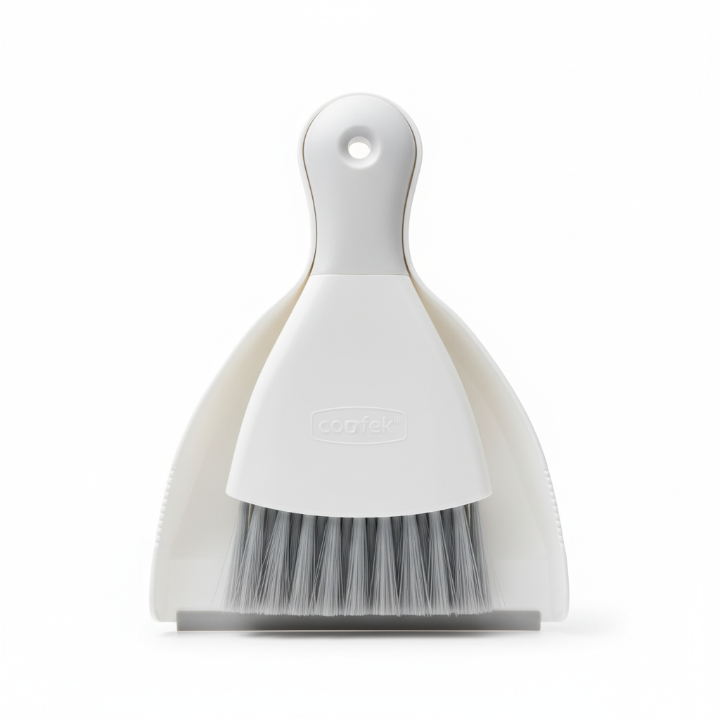 - Lopatë dhe dorezë fshese nga plastikë e bardhë për pamje të thjeshtë dhe neutrale.