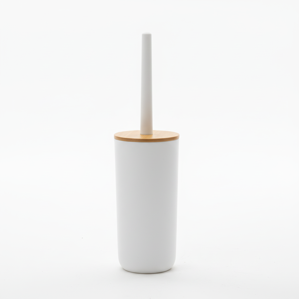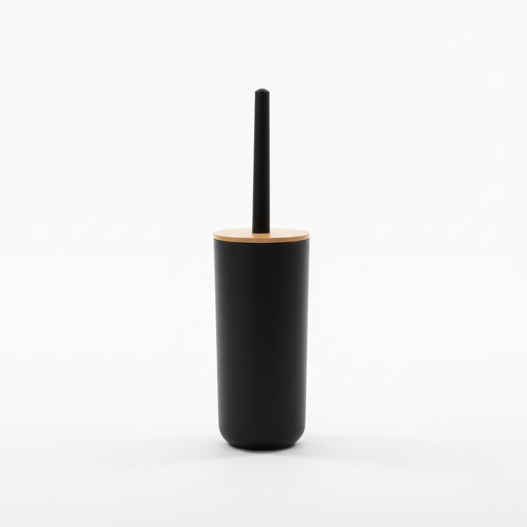 Furça e tualetit me mbajtëse cilindrike dhe përfundim mat ofron një zgjidhje praktike dhe estetike për banjon tuaj. Dizajni kompakt me kapak në stil druri përshtatet lehtësisht në çdo kënd.