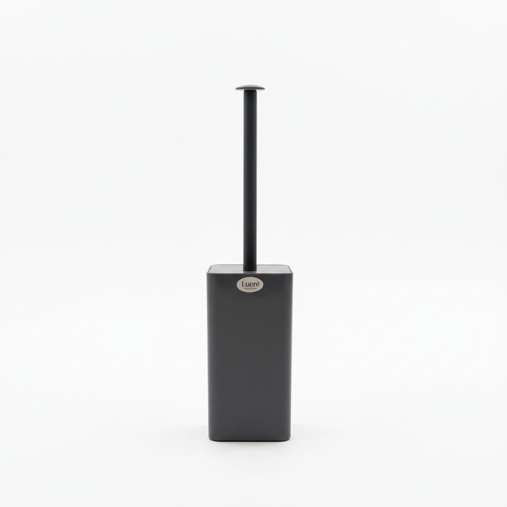 Furça e tualetit me mbajtëse nga Lueré kombinon dizajnin kompakt me një pamje moderne gri të errët, ideale për çdo banjo. Kontejneri drejtkëndor qëndron i lirë në dysheme dhe mban furçën të fshehur dhe të organizuar.