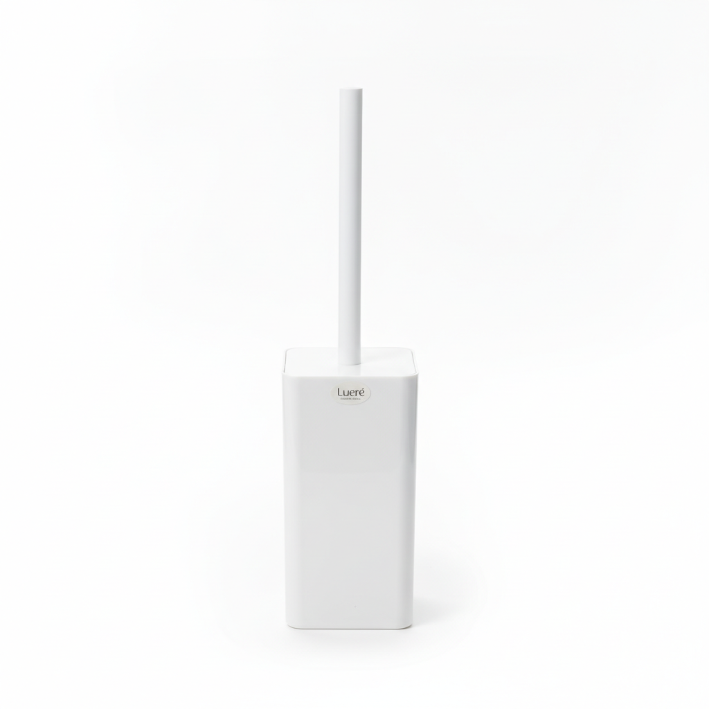 Set praktik për pastrimin e tualetit, me furçë dhe mbajtëse të mbyllur Luere në ngjyrë të bardhë neutrale. Formati vertikal dhe minimalist e bën të përshtatshëm për çdo banjo moderne.