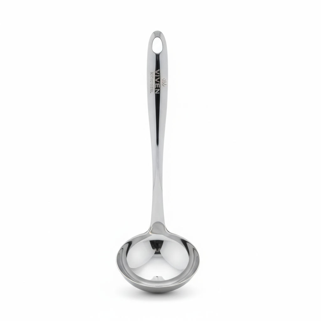 Garuzhdja prej çeliku inoks është një mjet praktik dhe rezistent për servimin e supave, salcave dhe lëngjeve në kuzhinë. Dizajni i saj i plotë metalik me fole të thellë siguron mbushje të lehtë dhe derdhje të kontrolluar.