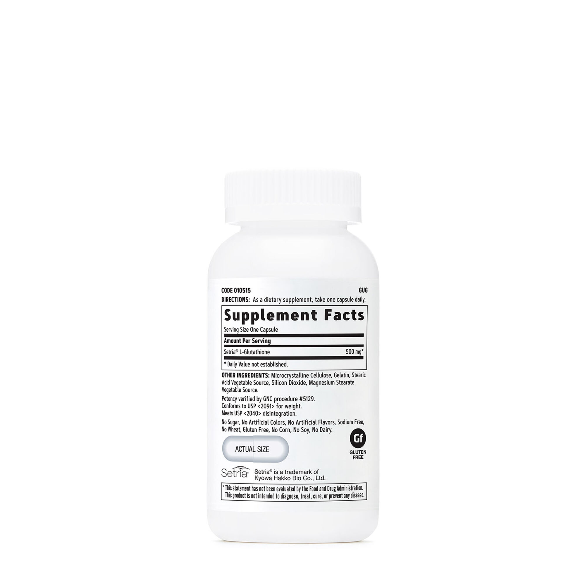 GNC L-Glutathione 500 mg është një suplement ushqimor që përmban 500 mg L-Glutathion për kapsulë. Glutathioni është një tripeptid i përbërë nga acid glutamik, cisteinë dhe glicinë, i pranishëm në çdo qelizë të trupit dhe thelbësor për integritetin qelizor dhe shëndetin optimal.