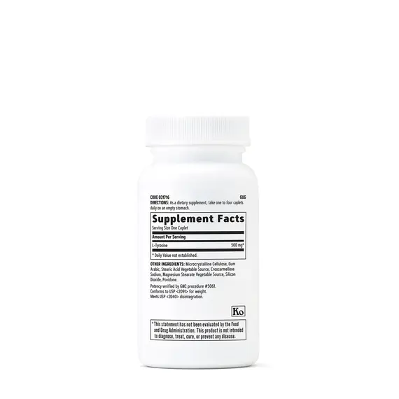 GNC L-Tyrosine 500 mg është një suplement ushqimor që përmban një aminoacid të rëndësishëm për funksionimin normal të sistemit nervor. L-tyrosine vepron si pararendës i neurotransmetuesve të rëndësishëm si dopamina, norepinefrina dhe epinefrina, të cilët ndihmojnë në komunikimin mes qelizave nervore dhe në ruajtjen e performancës mendore.