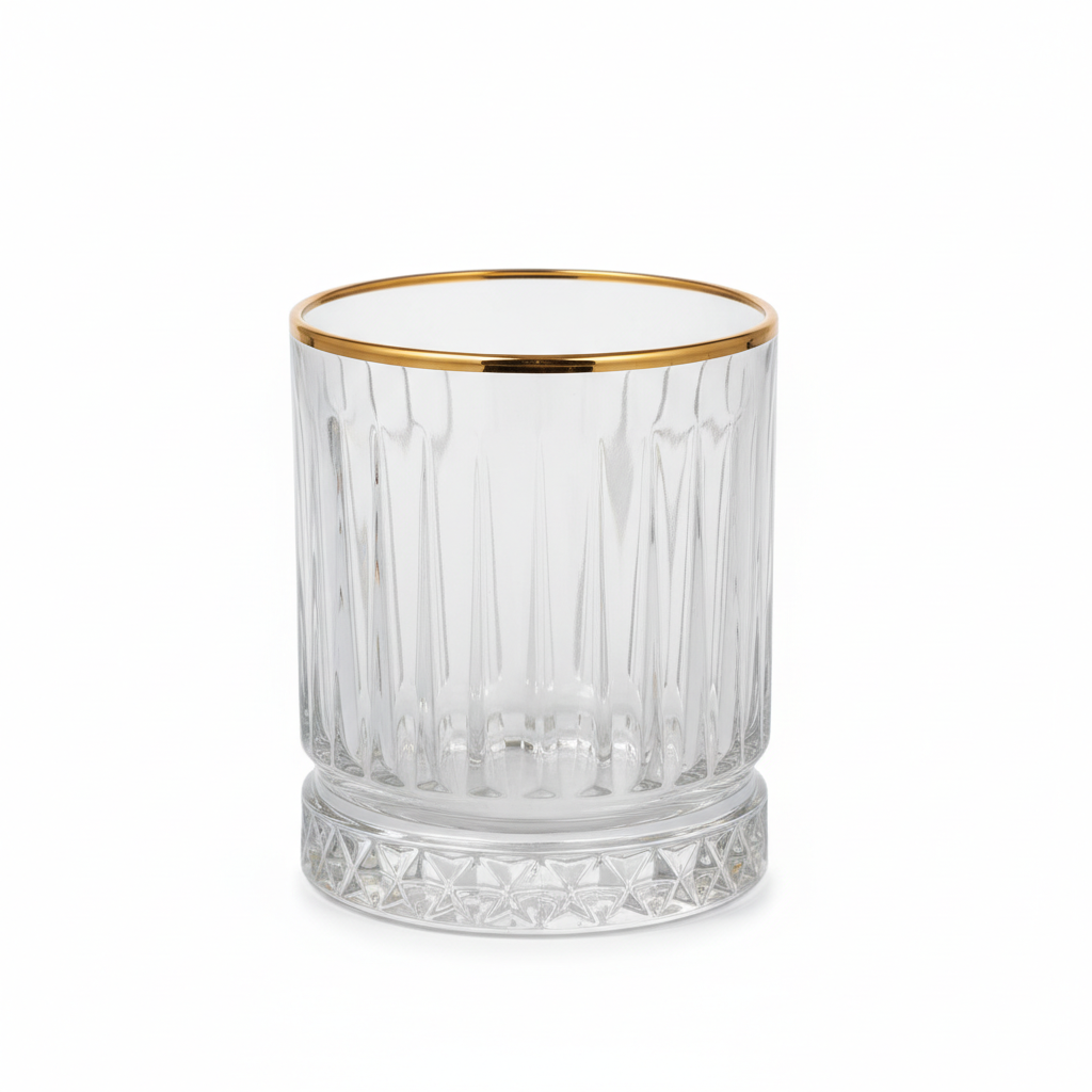 Këto gota xhami me dizajn vertikal të rifreskuar dhe buzë me ngjyrë ari sjellin një prekje luksi për çdo pije, nga uji tek koktejet. Kapaciteti i tyre rreth 225 ml i bën ideale për përdorim të përditshëm ose për servirje stil në festa dhe darka.