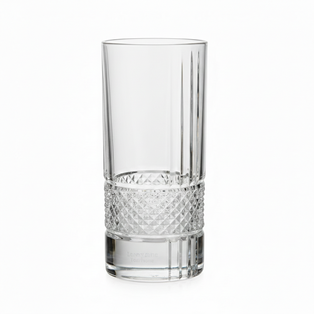 Këto gota cilindrike prej qelqi transparent sjellin një pamje moderne dhe të pastër, të përsosur si për përdorim të përditshëm ashtu edhe për momente të veçanta. Dizajni i tyre i lartë në stil highball i bën ideale për ujë, lëngje apo pije të ftohta. Baza e trashë dhe e rëndë ofron stabilitet të lartë, ndërsa modeli dekorativ me prerje diamanti rreth pjesës së poshtme shton shkëlqim dhe stil.