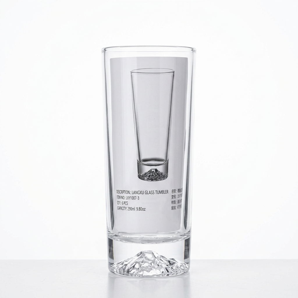 Seti prej 6 gotash qelqi me kapacitet 290 ml (9.80 oz) sjell thjeshtësi moderne dhe dukje të pastër për çdo pije të ftohtë. Dizajni i lartë transparent me bazë të teksturuar/reliev ofron pamje të sofistikuar dhe qëndrueshmëri më të mirë në tavolinë. I prodhuar nga qelq me cilësi të lartë, ky set është ideal për përdorim të përditshëm në shtëpi, bar apo zyrë.