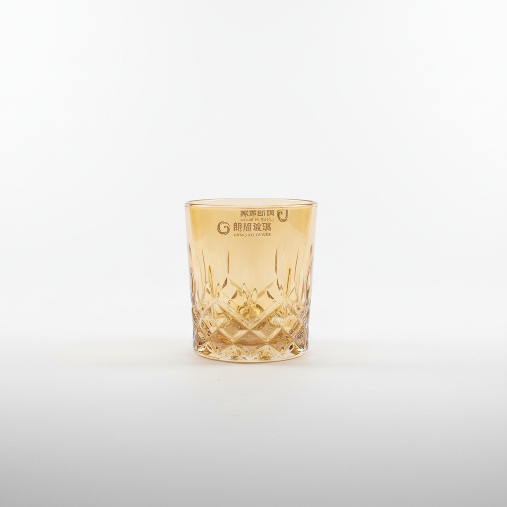 Set gotash qelqi me model të prerë si diamant dhe nuancë elegante amber, ideale për servirjen e pijeve të përditshme ose të ftuarve. Dizajni i veçantë shton stil në çdo tavolinë.