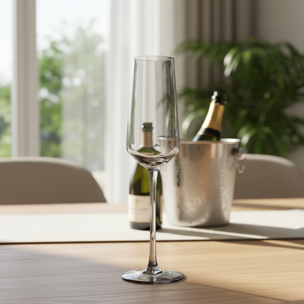 - Dizajn i hollë me këmbë të gjatë, stil flute për një paraqitje elegante në tavolinë.
