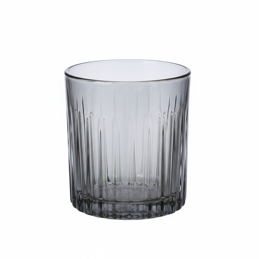 Kjo gotë elegante me ngjyrë gri të lehtë sjell një prekje moderne në shërbimin e whisky-t dhe pijeve të tjera. Dizajni i jashtëm me rifileta vertikale krijon reflektime tërheqëse, ndërsa baza e trashë siguron stabilitet dhe ndjesi solide në dorë. Forma e shkurtër në stil tumbler e bën të përshtatshme si për pije të forta, ashtu edhe për kokteje të ftohta. E prodhuar tërësisht nga qelqi cilësor, është e lehtë për t’u kombinuar me çdo servis tavoline.